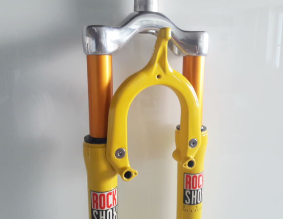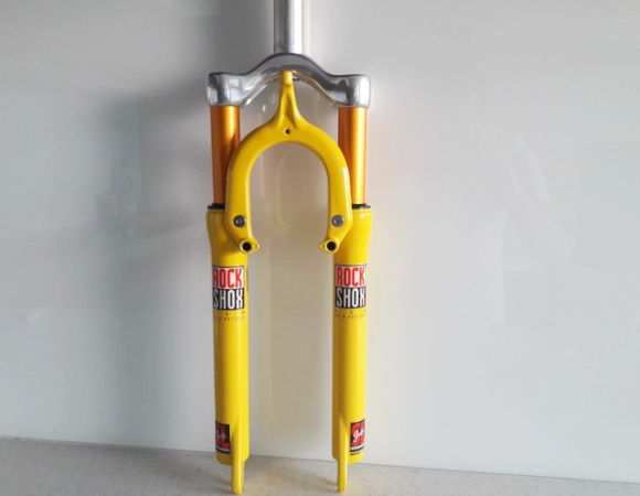 While ago I got an opportunity to restore a 1995 Rock Shox JUDY SL fork in its original yellow colour, and to fully riding condition. Time left and the fork has gone from my workshop. Today I've got yet another opportunity to restore another JUDY SL. I decided to make this restoration rather incomplete, as an "open project", and let someone else finish it. I started this restoration with my spare lower legs and cantilever brake arch I had unused for a long time. Rock Shox JUDY SL forks have been iconic since the '90s and therefore I wanted to make the restoration in the most wanted yellow colour. A key for the restoration was to find as original JUDY colour as possible and this is my choice. Finally, I decided to make this restoration more authentic, therefore I`ve made some "patina" usage. The lower legs got a set of JUDY SL decals.