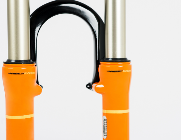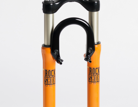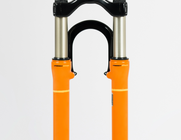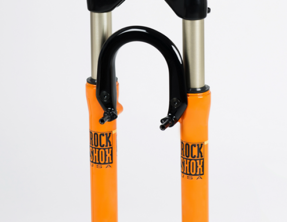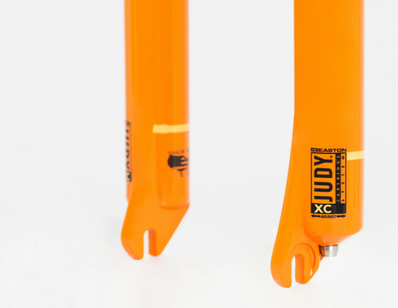 Yet another 1996 Rock Shox Judy restoration. I`ve used many new-old-stock parts to build this fork up. The fork currently works with new bushings and stanchions, GEN2 aluminium cartridges, experimental coil springs, and new custom painting. I did black anodization of the crown and steerer (the steerer has been custom-made from aluminium), as well as I made a black painting of the V-brake arch. I`ve assembled the fork with all titanium bolts. The lower legs have been professionally painted to bright red-orange with a custom-made black/yellow Rock Shox Judy decal set. The fork may come with a spare cantilever-brake arch that has been painted in bright red-orange as well (not visible in pictures). Preload adjuster knobs have been re-anodized in black.