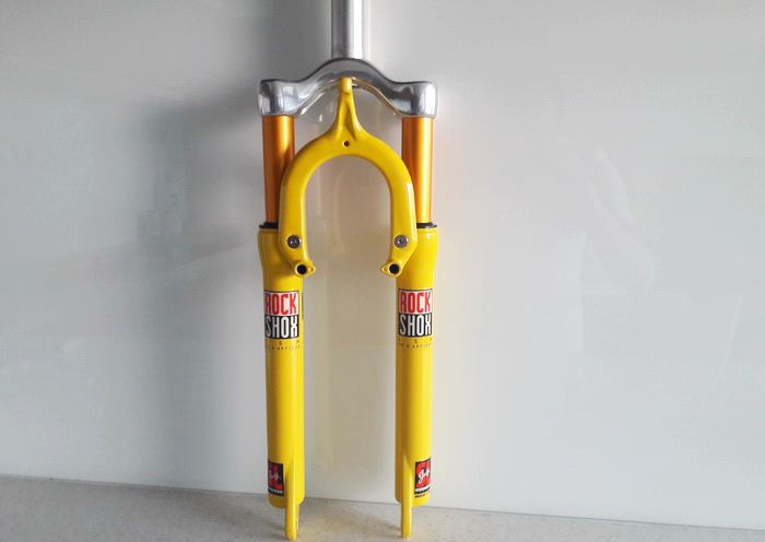 While ago I got an opportunity to restore a 1995 Rock Shox JUDY SL fork in its original yellow colour, and to fully riding condition. Time left and the fork has gone from my workshop. Today I've got yet another opportunity to restore another JUDY SL. I decided to make this restoration rather incomplete, as an "open project", and let someone else finish it. I started this restoration with my spare lower legs and cantilever brake arch I had unused for a long time. Rock Shox JUDY SL forks have been iconic since the '90s and therefore I wanted to make the restoration in the most wanted yellow colour. A key for the restoration was to find as original JUDY colour as possible and this is my choice. Finally, I decided to make this restoration more authentic, therefore I`ve made some "patina" usage. The lower legs got a set of JUDY SL decals.
