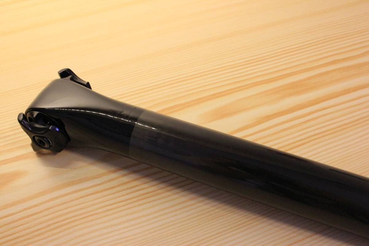 Posledným krokom bolo nové lakovanie sedlovky. Nanešťastie sedlovka Bontrager používa dve rôzne karbónové tkaniny, čo bez laku nevyzerá dobre. Navzájom sa „bijú“ (ale chápem dôvod ich použitia), preto som zvolil nové lakovanie hlavy sedlovky do čiernej, pričom telo sedlovky zostalo nenafarbené. Sedlovka bola prelakovaná bezfarebným lakom s UV filtrom. Zámok sedlovky som nechal preeloxovať do čiernej, aby ladil spolu s čiernou hlavou sedlovky.