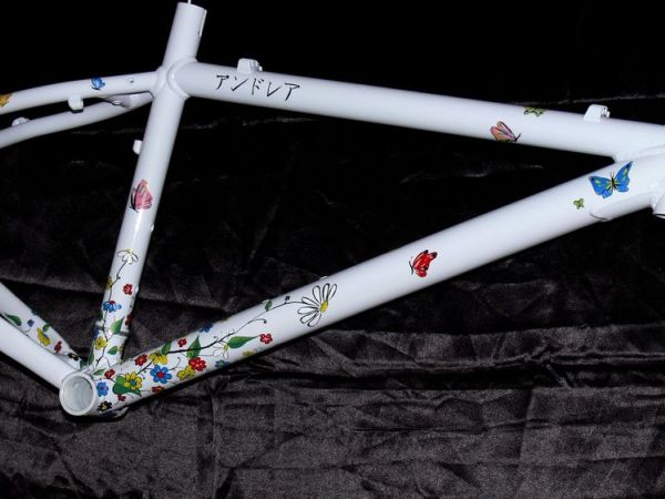Rám sa lakoval základnou podkladovou a krycou bielou farbou. Nasledovalo lakovanie custom airbushu podľa zadania a finálne sa lakovanie rámu uzavrelo…