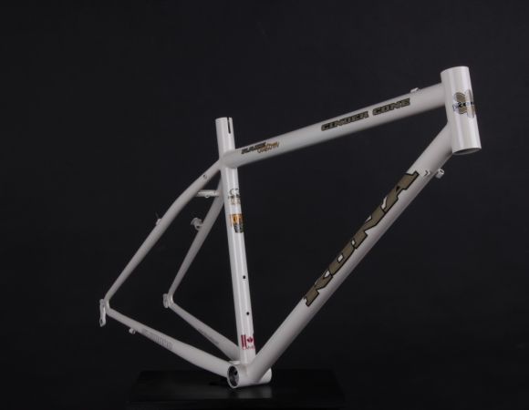 Rám i vidlica prešli kompletným "custom" faceliftom. Pôvodny, veľmi poškodený lak, bol odstránený pieskovaním a následne bol nastriekaný základnou bielou podkladovou a finálnou krycou slonovinou bielou farbou. Sadu nálepiek Kona Cinder Cone a Project Two "Joe Murray" som vyrobil sám a hoci podľa originálu, trochu som ich upravil. Všetky nálepky sú pod krycím lakom kvôli ochrane.