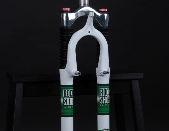 Ešte niekoľko slov k dizajnu a nálepkám. Páči sa mi tento dizajn. Biela farba je vždy pekná a zelené nálepky pôsobia sviežo a výrazne. Celý set nálepiek na vidlici je moja práca. Chcel som vytvoriť custom farebnú schému, ale s ponechaním originálnych emblémov Rock Shox a Indy. Nálepky boli vytlačené v originálnej veľkosti digitálnou tlačou s tenkou priehľadnou vrstvou vinylu. Veril by si, že táto vidlica má už 21 rokov?