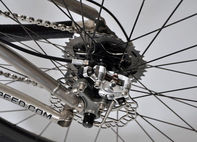 For this project, I`ve selected classic XC disc brakes SRAM Avid X.0 in silver edition with carbon levers, Matchmaker X clamps, and all-black titanium bolts. Ashima rotors (160/140) and Extralite titanium disc bolts complete the brake set.