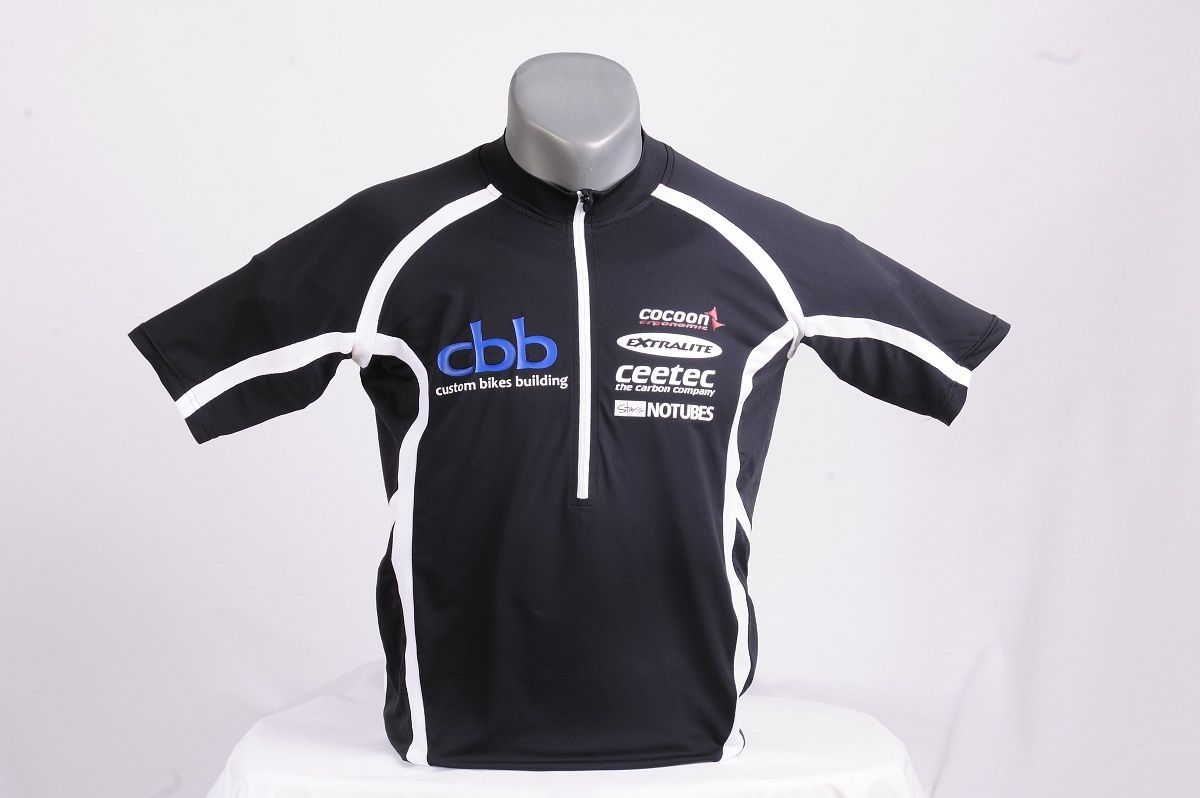 Základom môjho tímového dresu je cyklistický dres s krátkymi rukávmi cocoon ergonomic. Dres ponúka 3 zadné kapsy, jednu so zipsom. Ľavá predná strana dresu nesie tímové logo, graficky upravené pre potreby realizácie potlače s dôrazom na tmavý/čierny podklad, spolu s niekoľkými logami firiem (pravá predná časť), ktorých produkty odporúčam aj na svojom webe. Zadná strana dresu nesie veľké tímové logo spolu s URL odkazom na môj web.